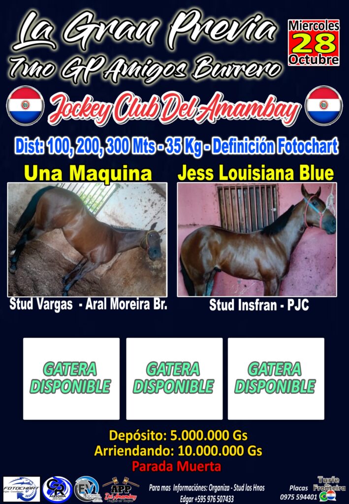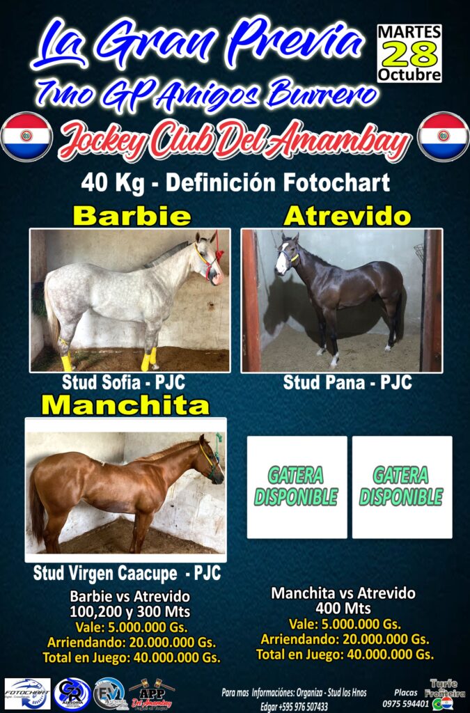 100,200,300 mts Lorenzo Potrero Sur Ganador Jockey Club del Amambay – 11/10/2025Peso: 35kg Marcas de Mano200 metros – 12.74s100 metros – 7.43s Cancha Pesada