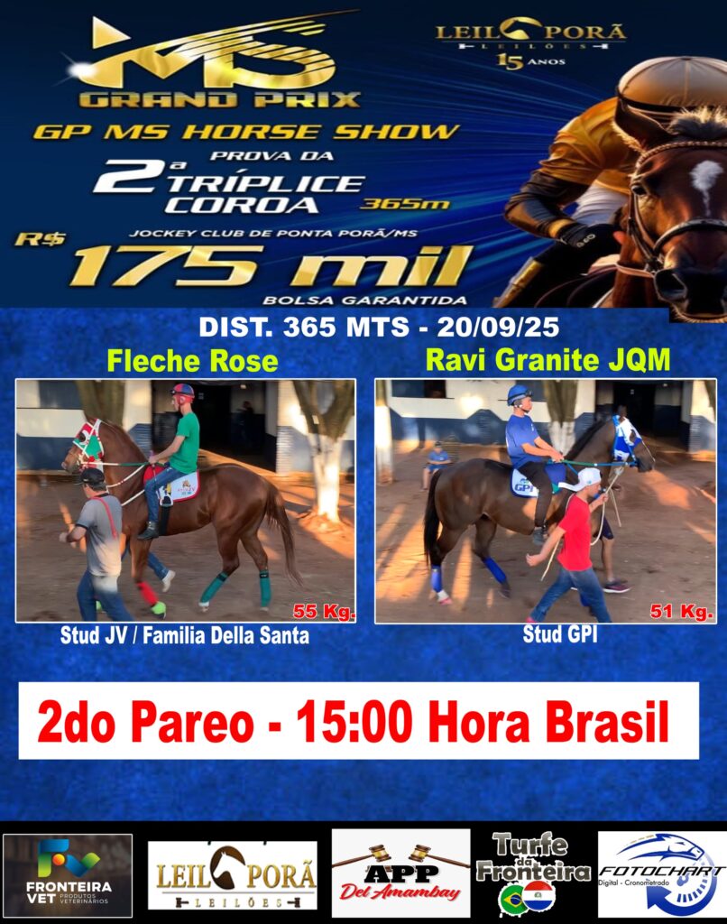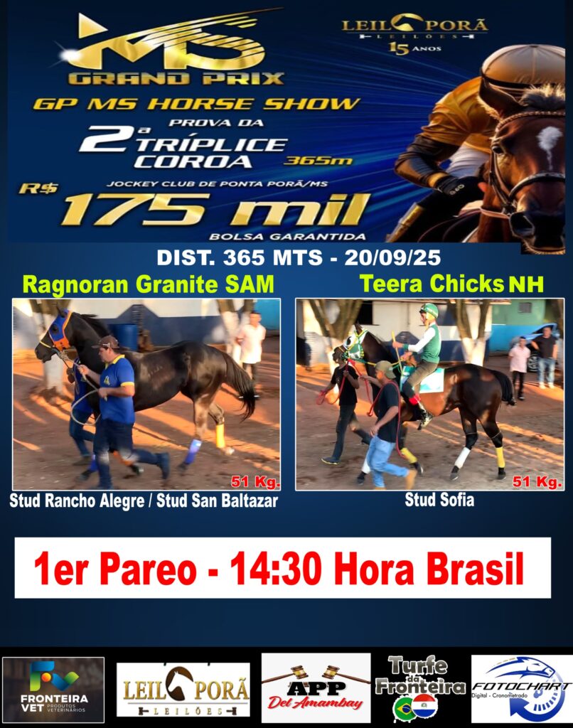 23/02/25 Distancia 301 Mts Campeon: I Have A Special – (Duce Bryan x Withe Face Zoon)Criador: Harás MedinaPropi: Stud FuturistaCiudad: Ponta PorãCuidador: E.J. SILVAJockey: L. SILVAVeteri: Rafae Llollighetti