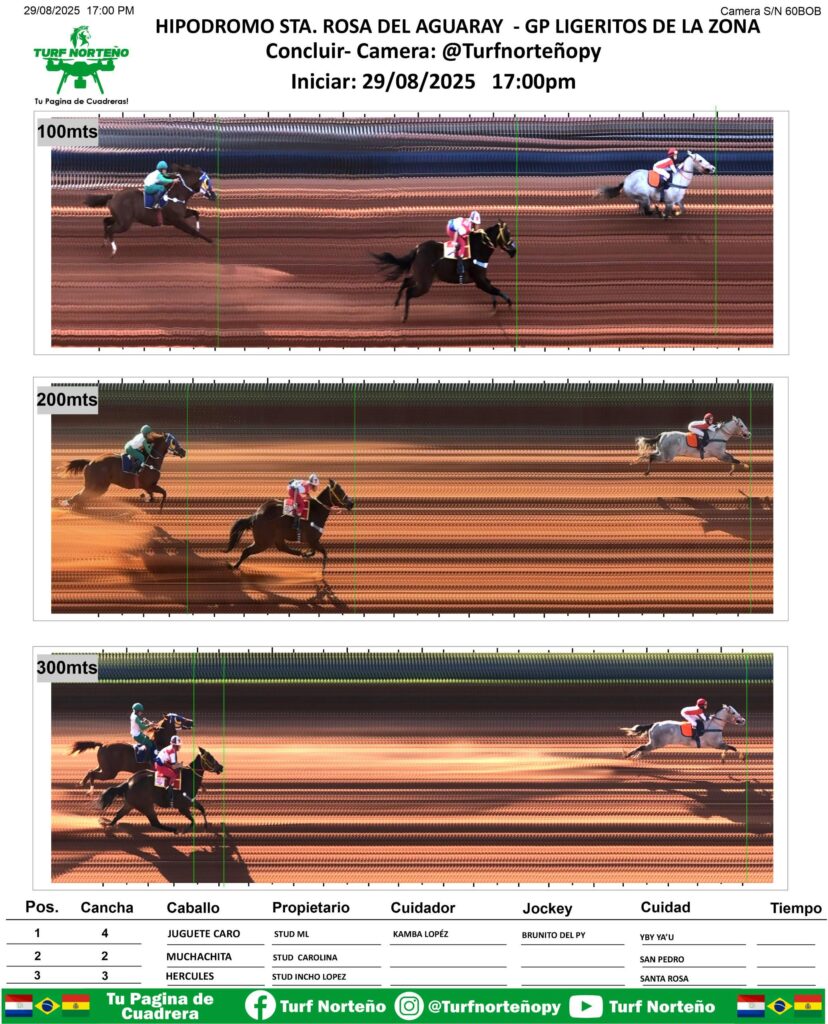 Representante de Yby Ya鈥檜 y propiedad del Stud ML, se consagr贸 campe贸n del Gran GP Ligeritos de la Zona, a una distancias de 100, 200 y 300 metros en el Hip贸dromo Santa Rosa del Aguaray.