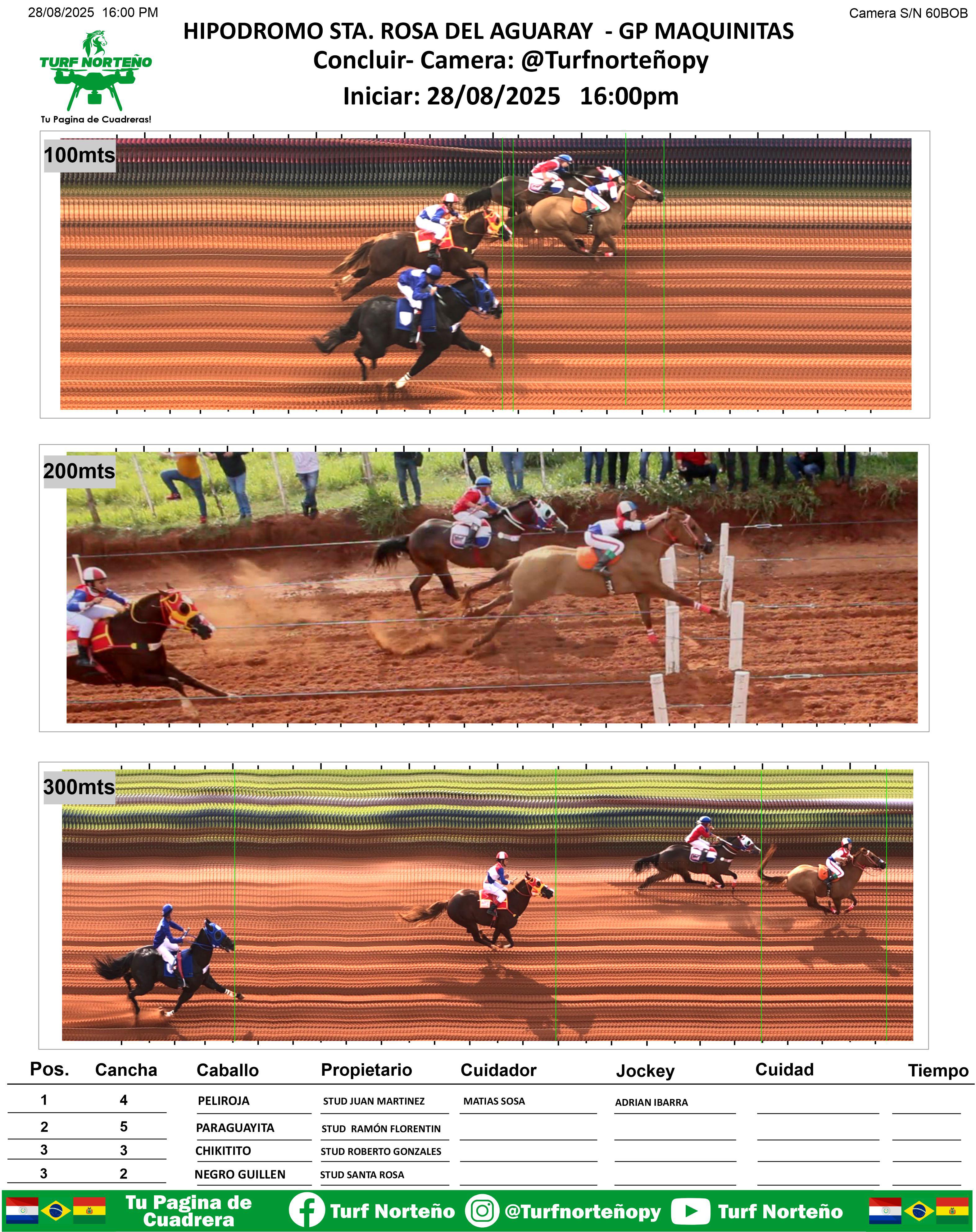 PELIROJA se llevó el GP Maquinita de Velocidad a una distancia de 100, 200 y 300mts, con la excelente monta de Matías Sosa y al cuidado de Adrián Ibarra.