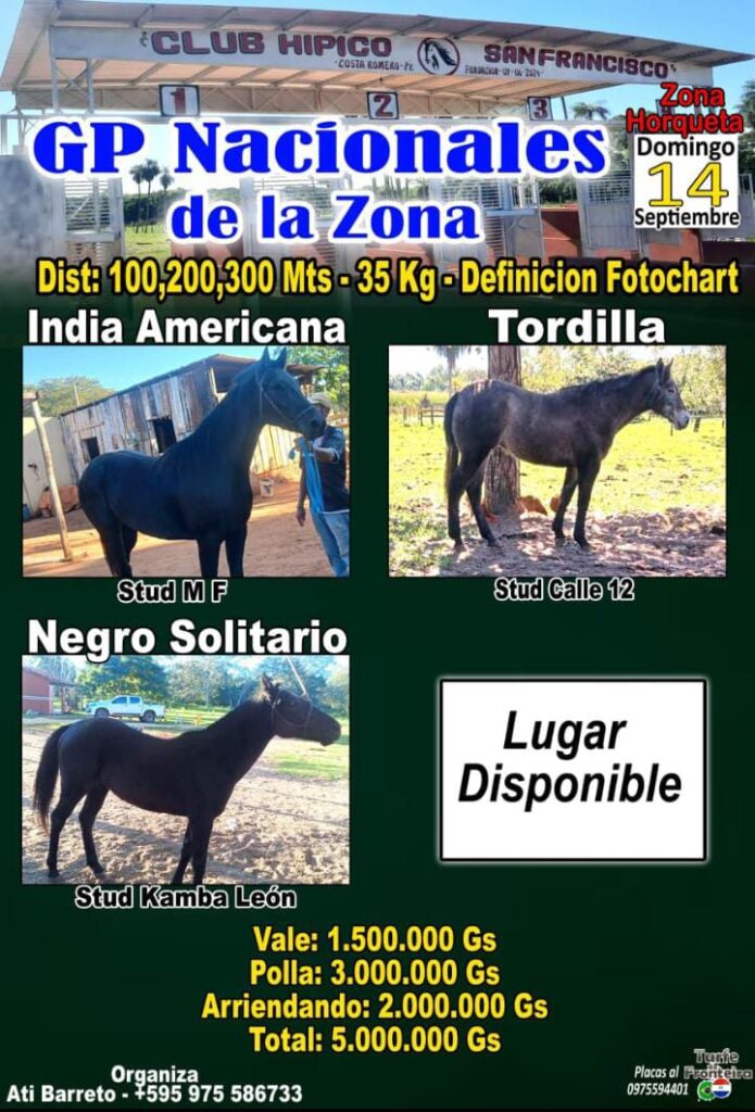GP Nacionales de la Zona – India Americana / Tordilla / Negro Solitario
