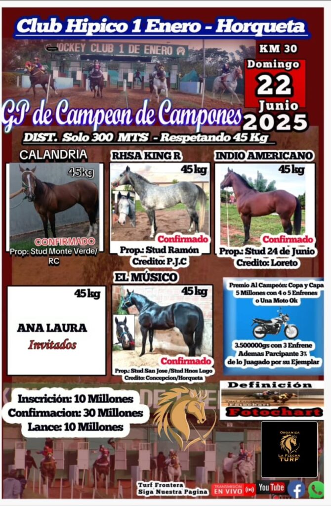300 Mts. – 45 kg Ganador Calandria 2do Indio 3ro RHSA King Reason 4rto Musico